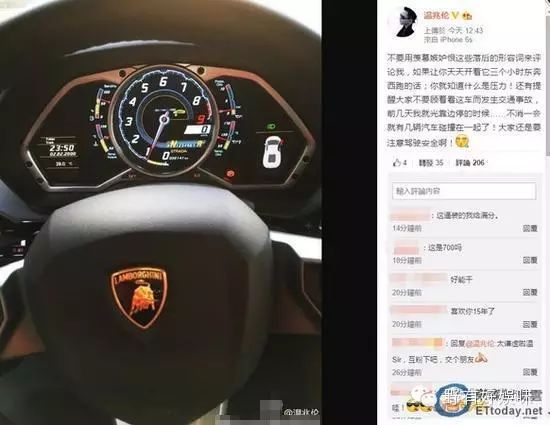温兆伦6日贴出爱车的照片,超炫的黑色外观和驾驶座的仪表板,点燃车迷的心。而他发文写道,“不要用羡慕嫉妒恨这些落后的形容词来评论我,如果让你天天开着他3个小时东奔西跑的话,你就知道什么是压力!”他提醒网友路上看到这种超跑,不要光顾着看结果发生交通事故,“前几天我就光靠边停的时候,不一会就有几辆汽车碰撞在一起了!大家还是要注意驾驶安全啊!”
