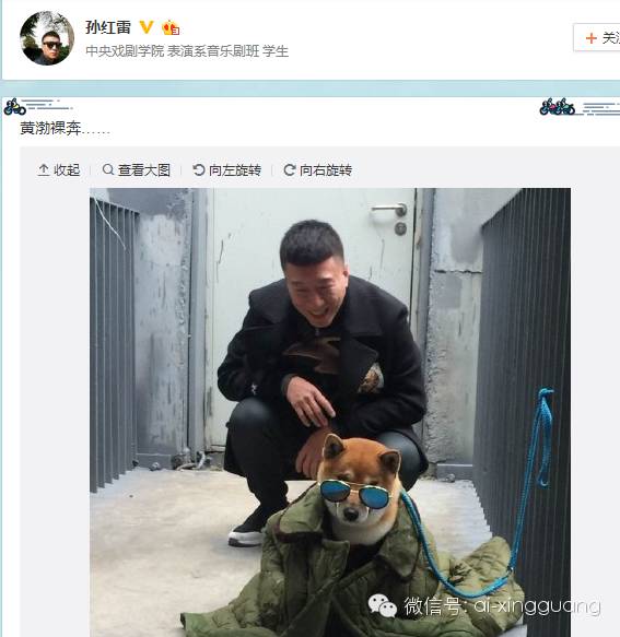 这边孙红雷逗“犬版黄渤”,那边黄渤就跟“犬版孙红雷”自拍了,而且撞脸度更高。正在录制新节目的孙红雷发了一条微博,只有四个字——黄渤裸奔