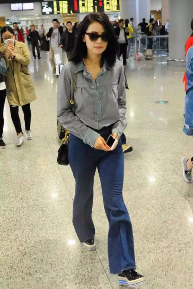 蒋欣这个照片非常明显,就是没有腰,腰很粗,