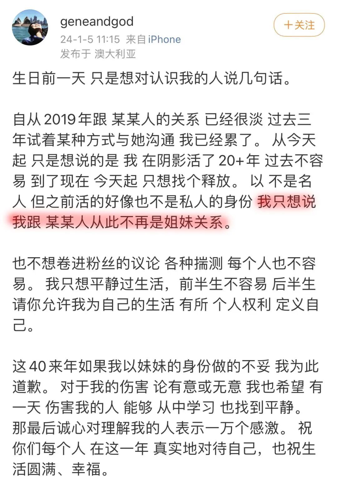 前阵子,孙燕姿妹妹在生日前一天公开喊话,两人从2019年就关系很淡,从此不再是姐妹关系。