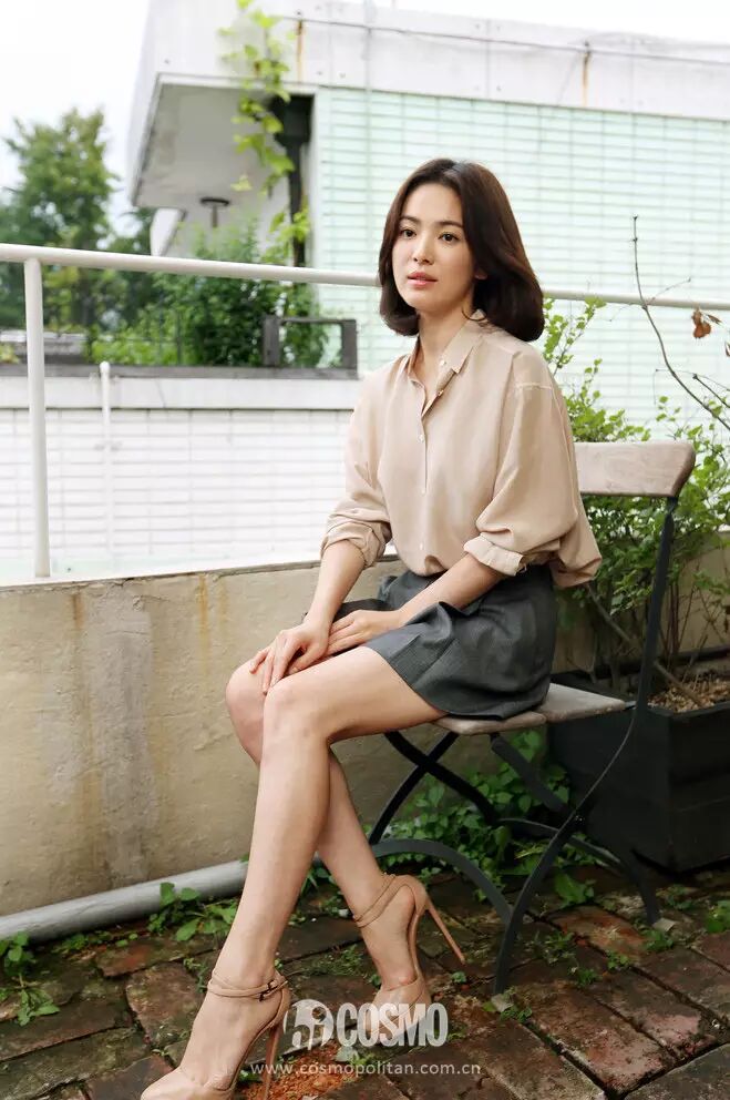 随处充盈着恬淡气质的宋慧乔,用雪纺衬衫搭配西装布料款高腰短裙和绑带高跟鞋,卷起的袖子无意间展现性感与随性,高腰短裙与绑带高跟鞋突显修长美腿,哈比族不妨学习一番。