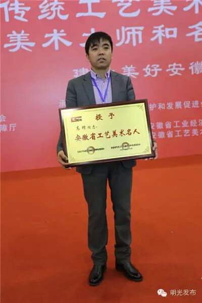 11月14—16日,安徽省第四届传统美术工艺产品展览暨第三届省工艺美术大师和名人授牌仪式在合肥安徽国际会展中心隆重举行,我市高修获得“第三届省工艺美术名人(工艺雕刻·玉雕)”荣誉称号。
