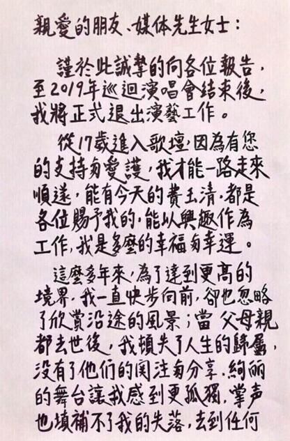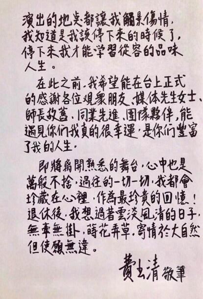 费玉清把一生献给歌坛,最后以一封亲笔信辞别,面对这样体面的告别方式,人们更多的是理解和祝福。