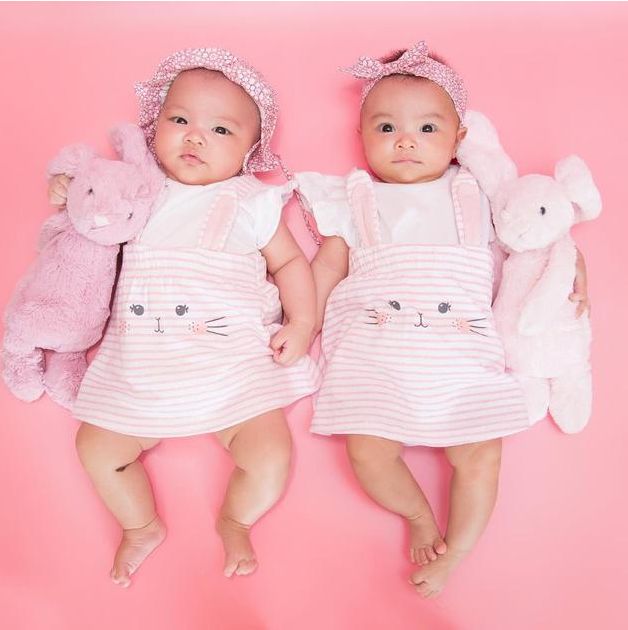 两位小公主的真面目今天终于看清楚了,虽然双胞胎姐妹,但模样就不太一样,难怪熊黛林称:“Mini Ken and Mini Lynn!”网友就留言说一个像爸爸,一个像妈妈,平均分配也不错。