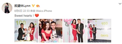 在8月6日,熊黛林和老公还为宝宝举行了百日宴。而第一次出镜的两位宝宝也十分羞涩,没有露出太多镜头。这次爆出的可爱萌照,让人看清了宝宝的长相,萌态可亲,粉丝们都十分激动。