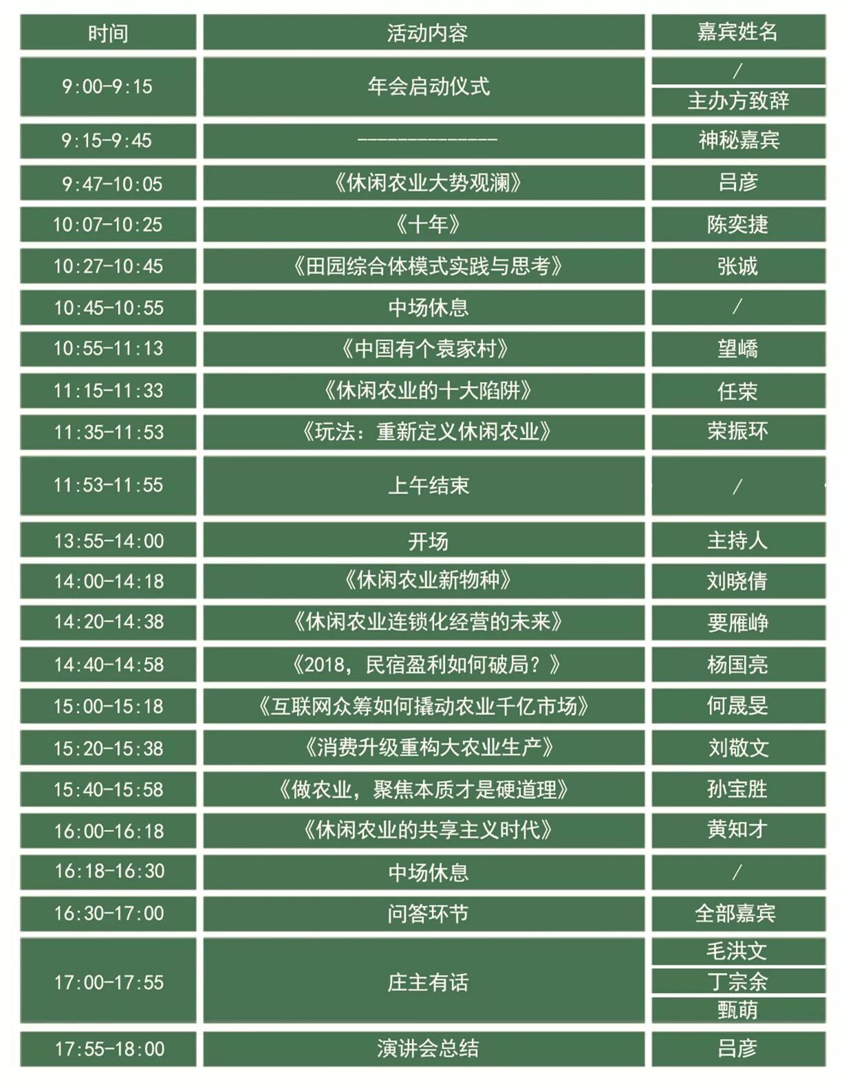 2018年1月20日上午9:00,我们将聚集数百名来自全国各地的休闲农业和乡村旅游从业者,举行一场属于休闲农业和乡村旅游热爱者的思想盛会!