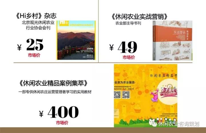 嘉宾 席位 | 早鸟价 680 元/位 | 价值632元的礼包 五星级标准: 午餐席位 1个 演讲会门票 1张 《休闲农业实战营销》1本 《休闲农业亲子案例》1本 《Hi乡村》杂志 1本 大会资料 1份 |