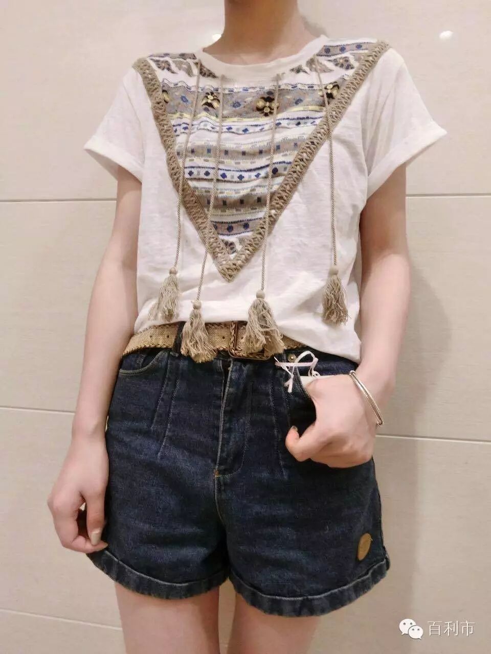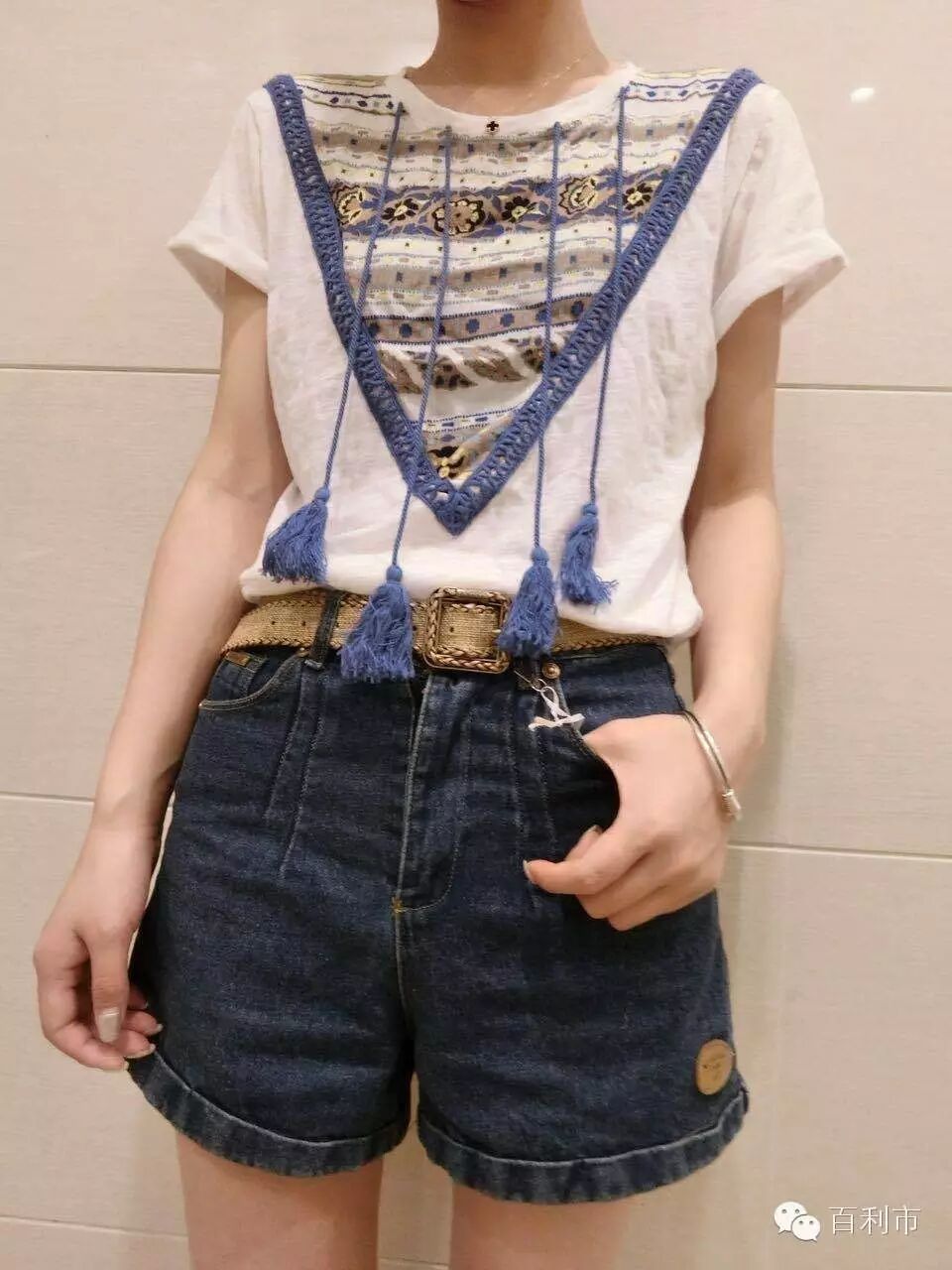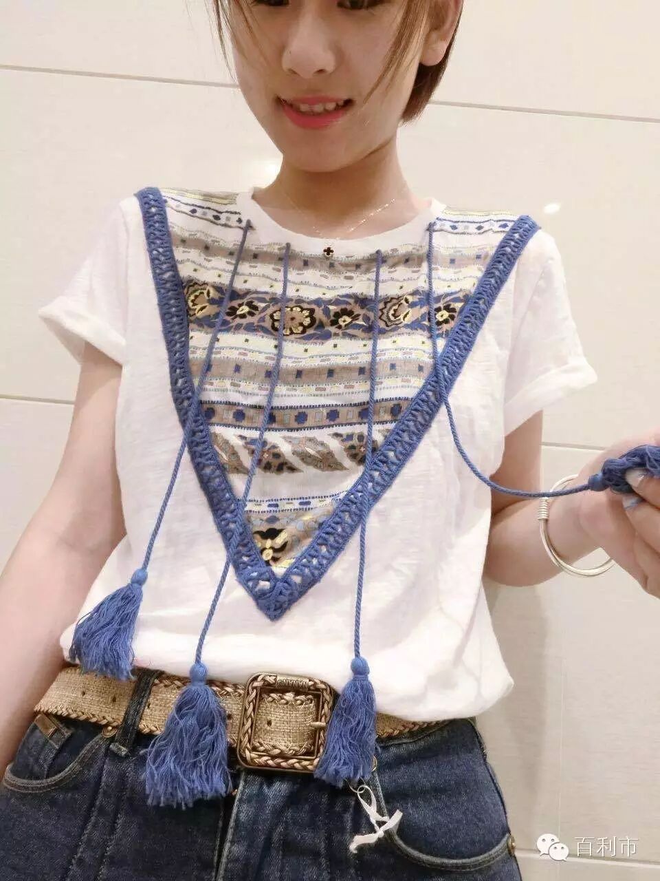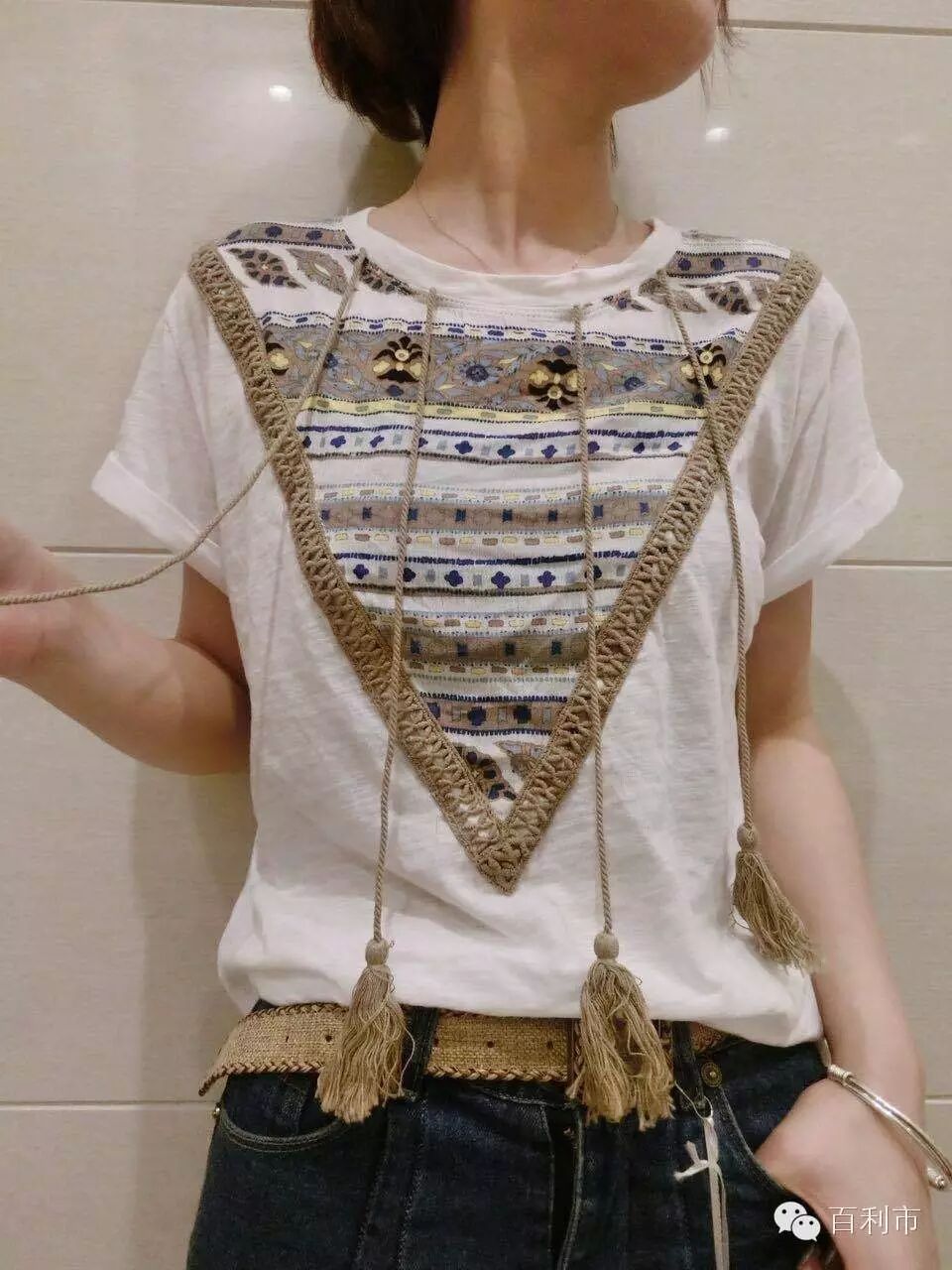 拼接T恤轻薄又透气,配搭着复古风的印花和流苏,真是难以抉择。