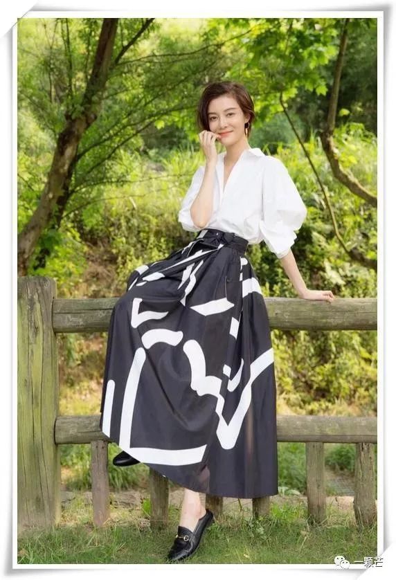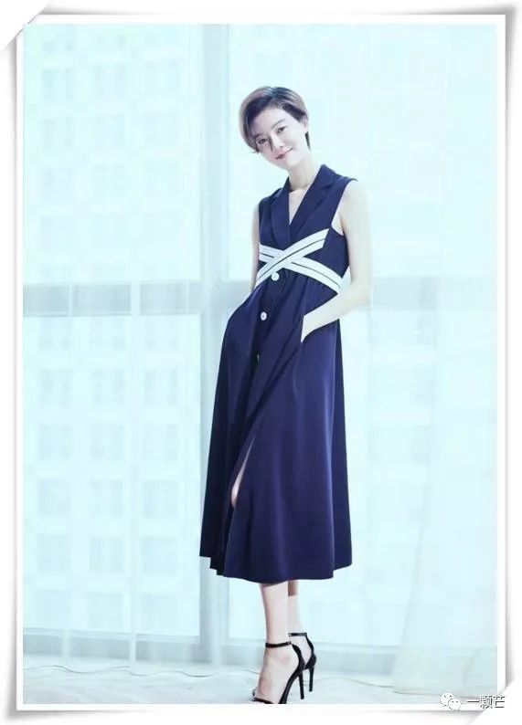这身连衣裙看起来可以说十分的具有个性,以蓝色为主让车晓看起来多了几分优雅清新的感觉,撞色的白色绑带设计增添了几分个性,具有很好的减龄效果。
