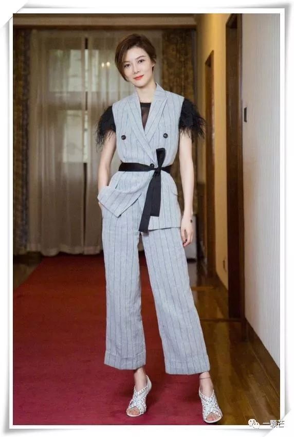 本来西装款式的衣服给人的应该是简洁利落的气质,但是两边拼接羽毛的设计增添了几分飘逸灵动的感觉,同时也显得很是个性,让车晓具有更好的吸睛效果。