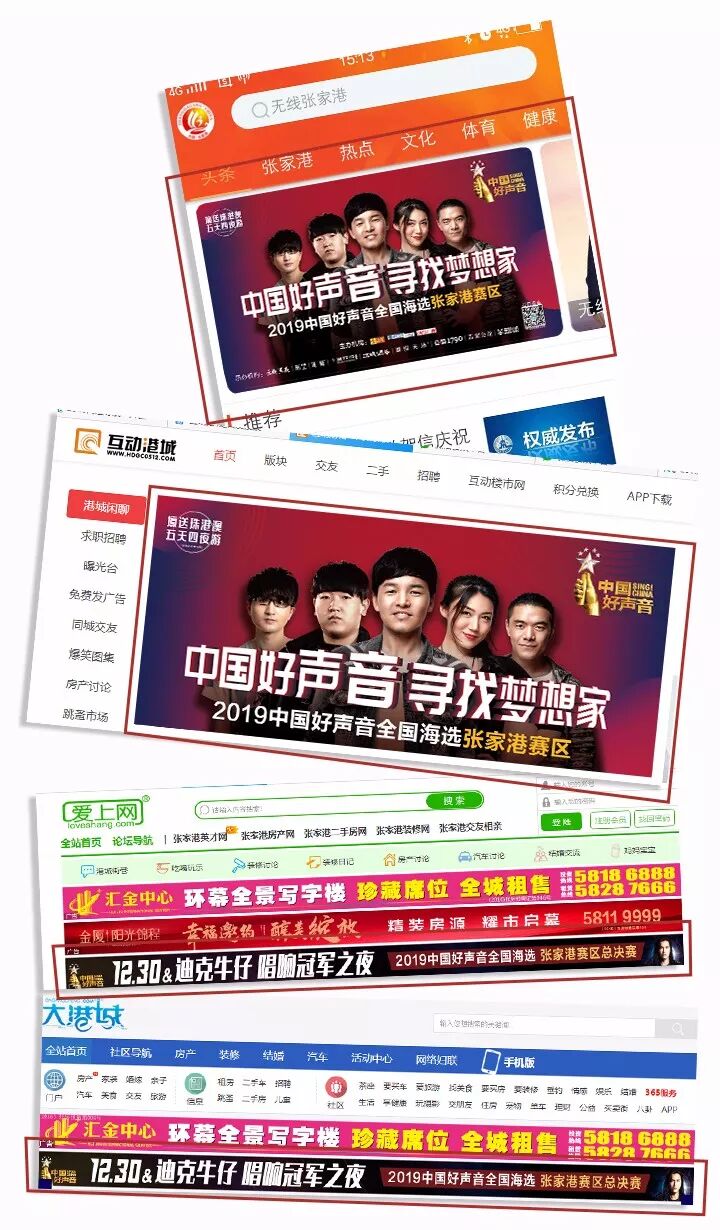 张家港电视台、张家港电台、张家港日报、张家港扬子晚报、爱上网、大港成、房产网、安居客、互动港城、十五资讯、52KD等