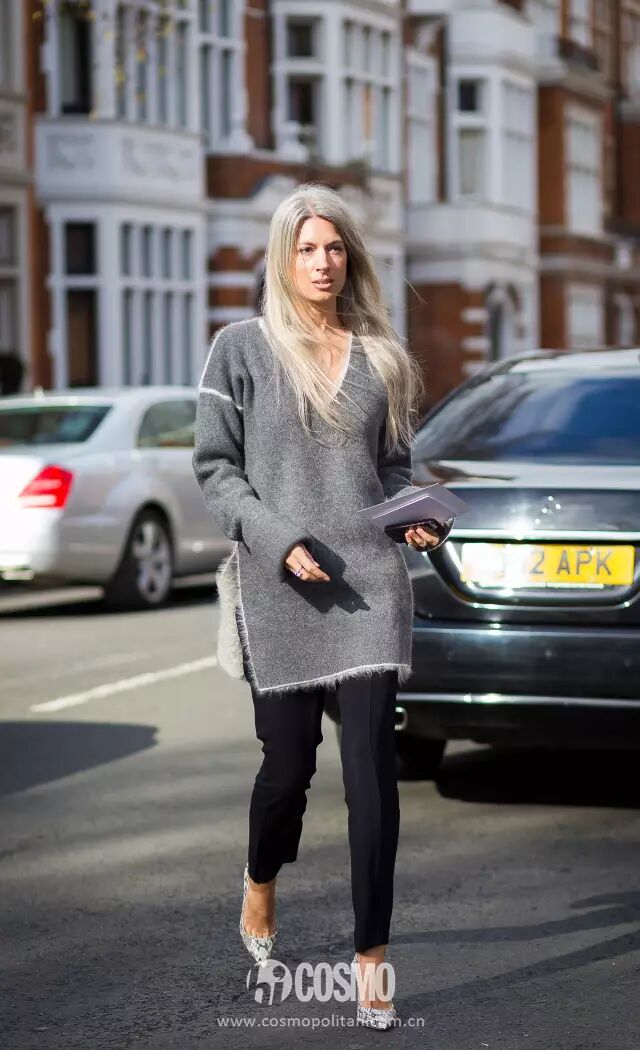 谁说长款毛衣只能配牛仔裤?这不,V领设计的开衩毛衣+西裤+高跟鞋也能穿出高挑感,绝对是时尚OL们的最佳LOOK,同时对身材也没有设限,任何身材都能穿哦。