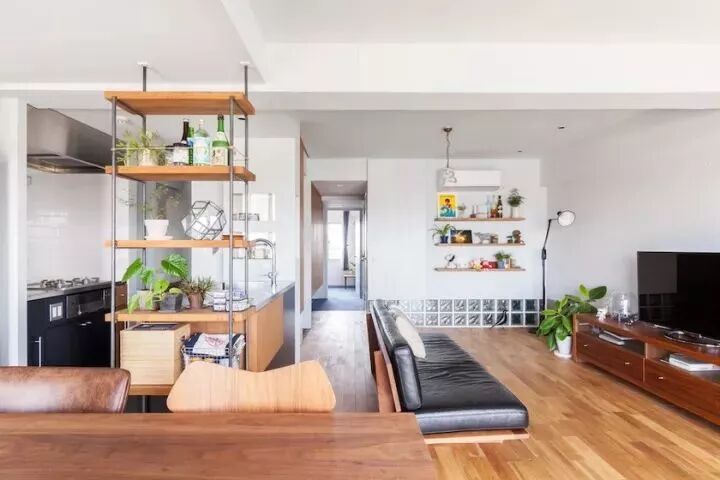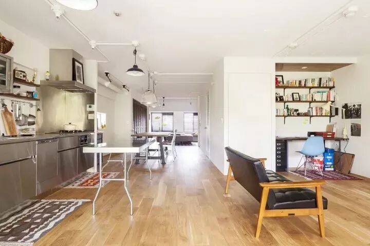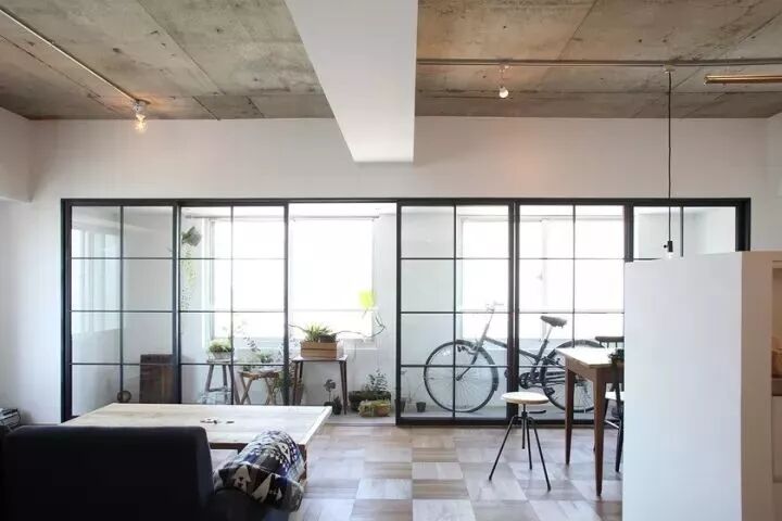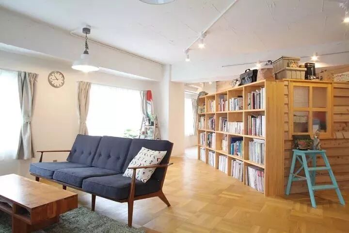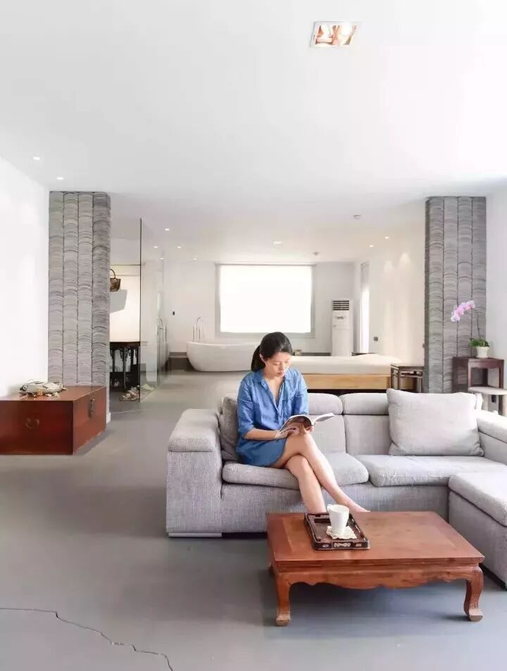 ▲这个长条形大平层中,只用家具做隔断也是美美的。