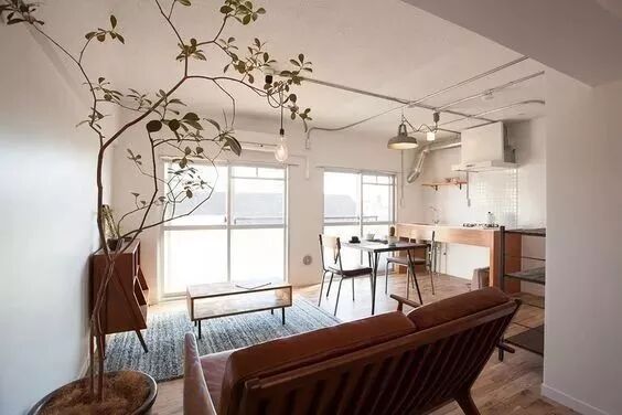 ▲屋主用一款不能再普通的沙发,搭配网红植物做隔断,意境一下子就出来了。
