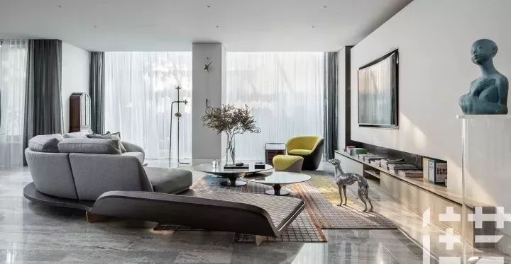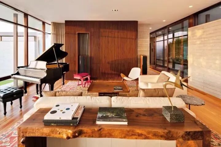 如果是别墅,沙发放中间就是个更自然的选择。客厅过大,这时需要沙发来坐镇给人安稳感。