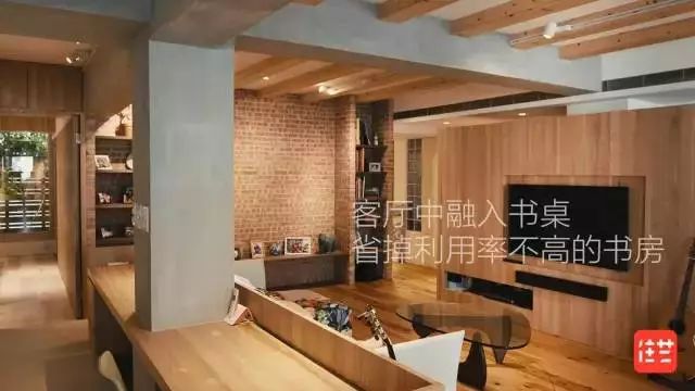 在客厅加入工作台和书房的功能。