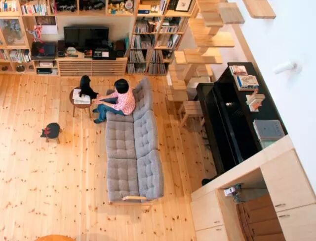 ▲音乐人的家里也有舞台,利用沙发的不规则摆放,行走更自由。