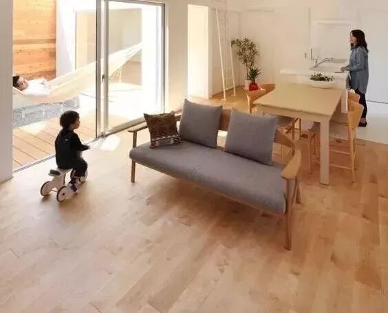遇到长户型,可以采用沙发放中间的方式分隔空间!