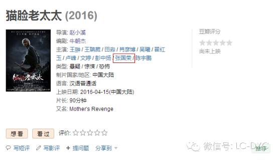 回到《猫脸老太太》这部电影,影片由王翀、田淼、肖彦博等主演,而小抠在主演名单里,还赫然发现了“张国荣”这个名字,吓死宝宝了!!!