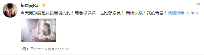 而在那些年中,饰演柯景腾的柯震东,在知晓沈佳宜(陈妍希)结婚的那刻,发了一条微博,讲真有点蛋蛋的忧伤....