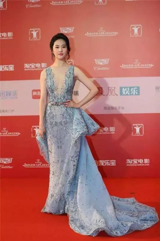 李冰冰透视天蓝色长裙,性感十足,点缀的水钻看起来十分高贵。