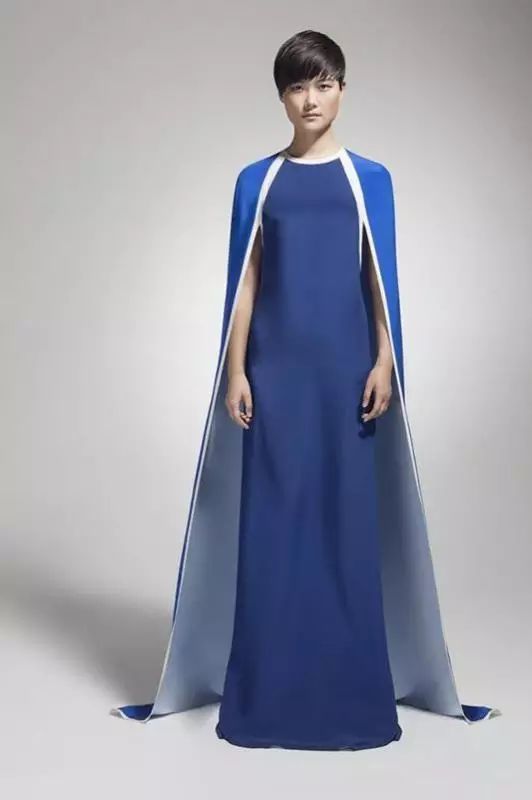 李宇春蓝裙子外搭蓝色披肩,时尚大气。