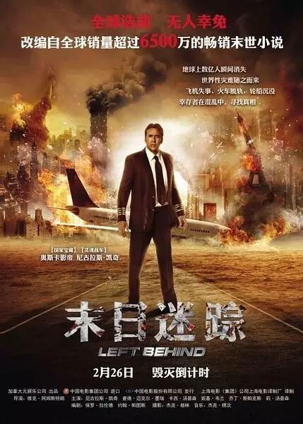 《末日迷踪》讲述有凯奇扮演的机长驾驶飞机在万米高空突遇诡异气象,同时地球上成百万人神秘消失。凯奇要将破损的飞机迫降,地面上他的女儿也要寻找失踪的妈妈和弟弟,依旧是“动作+惊悚+凯奇”的烂片老路子。