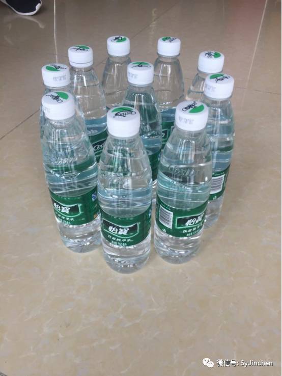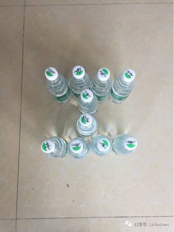 (瓶子摆的整齐化一,商标一律对外,时刻体现5S管理。)