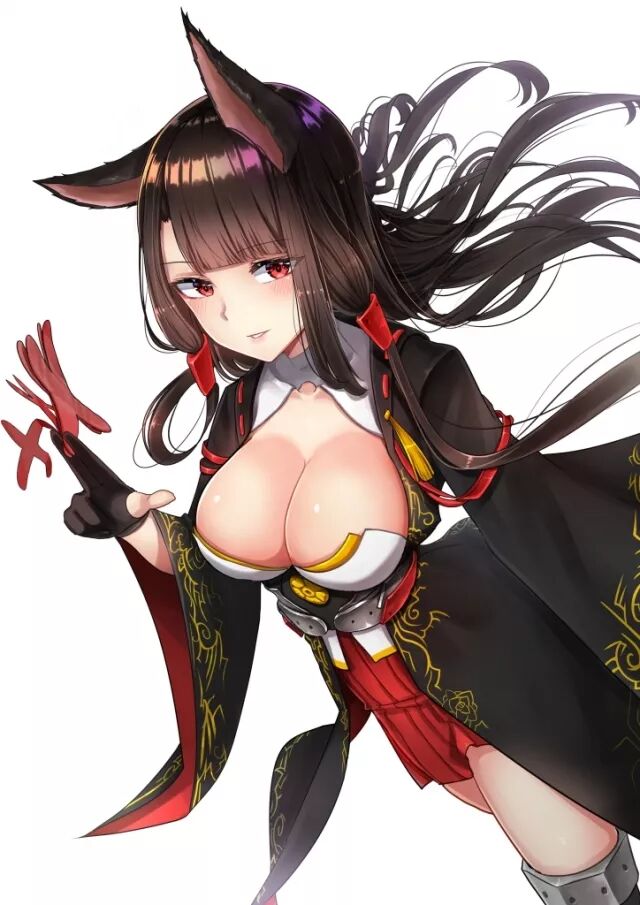 赤城的初始造型,兽耳狐尾的黑丝巨乳小姐姐,有着重度的病娇属性,想要把所有接近指挥官的“虫子”清理干净,独占欲很强。