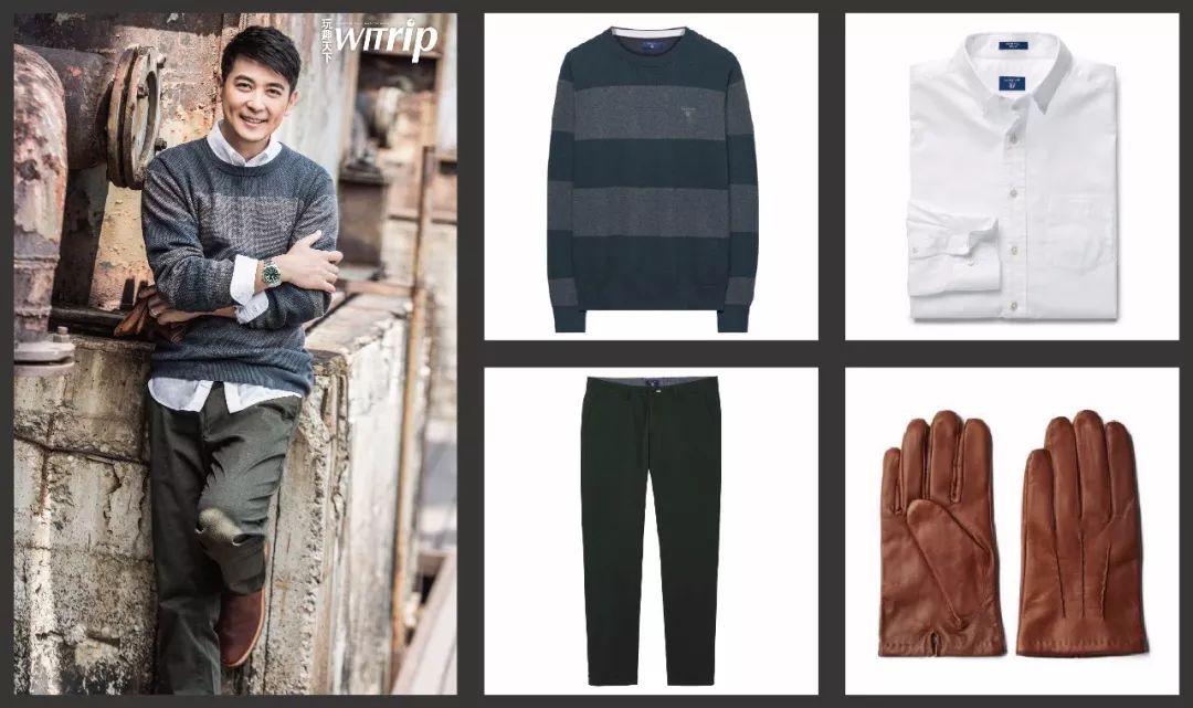 保剑锋面庞里时时涌动着绅士的内涵,这套手持GANT皮手套搭配GANT白色衬衫、毛衣、长裤透露着浑然天成的儒雅与自信。