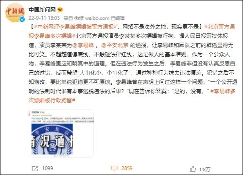 据@中国新闻网 9月11日消息,中新网评李易峰嫖娼被警方通报:网络不是法外之地,现实更不是: