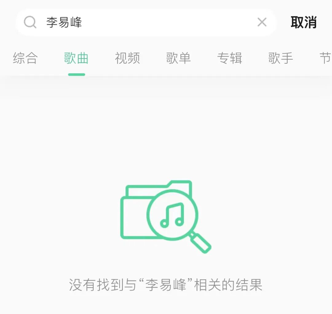 在QQ音乐、网易云音乐等音乐平台也均无“李易峰”的搜索结果。