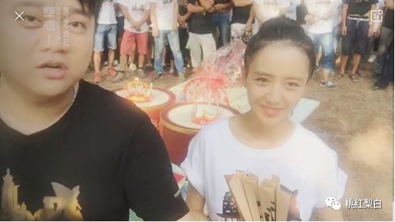 2016年的生日会场地看起来就更简陋了,可能都算不上有场地,大概就是在北京片场附近找了一片空地,放一张桌子,桌子上放着蛋糕和礼物。