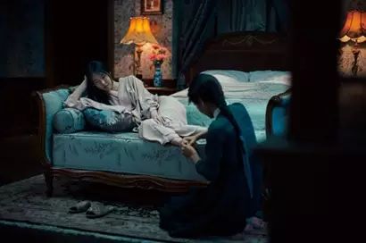 李政宰为金敏喜拍照,看背景应该是在家中。