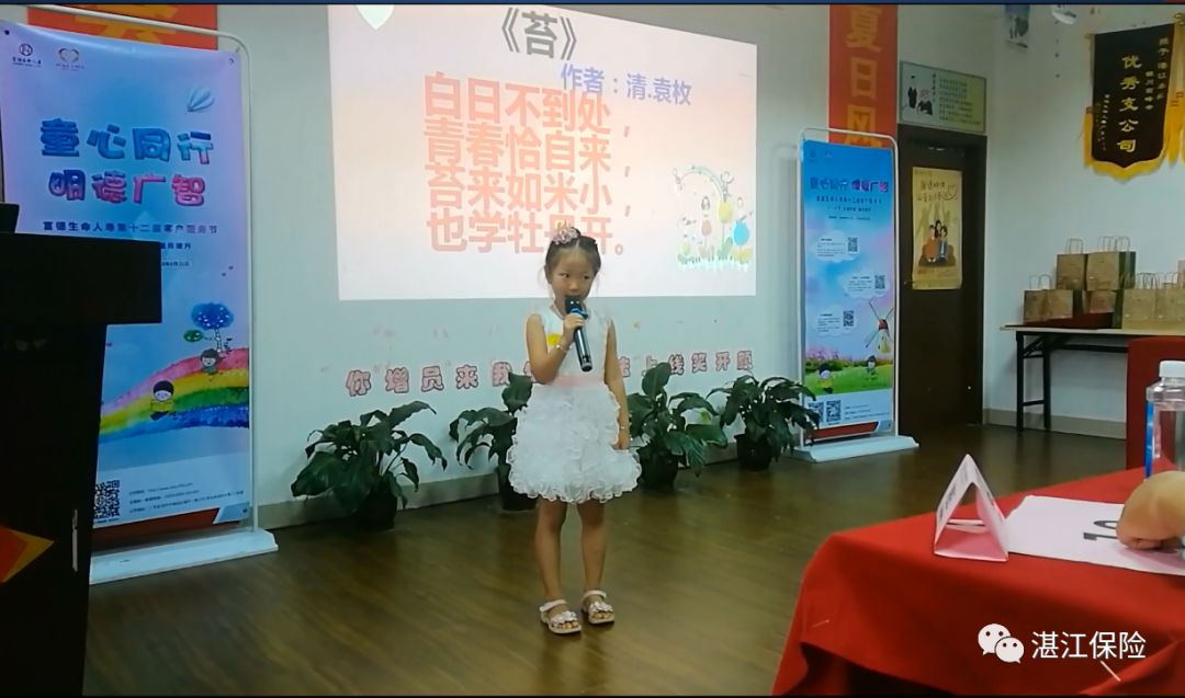 “白日不到处,青春恰自来,苔花如米小,也学牡丹开。苔藓自是低级植物,多寄生于阴暗潮湿之处,可它也有自己的生命本能和生活意向,并不会因为环境恶劣而丧失生发的勇气,它就是凭着坚强的活力,突破环境的重重窒碍,焕发青春的光采……”一位6岁的小姑娘倾情朗诵袁枚的诗歌《苔》,她稚嫩而甜美的声音,沁透人心,赢得了在座的嘉宾一阵阵响亮的掌声。