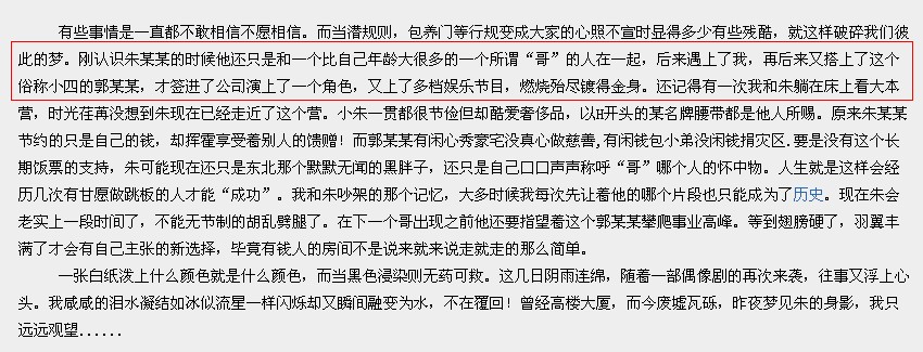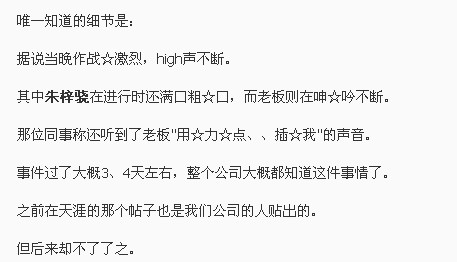 联想到那个员工爆尿贴里面,还说到某同事当场撞到郭敬明跟朱梓骁在酒店OOXX的细节。卦总彻底凌乱了。
