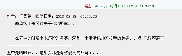 卦总看到爆尿,小四还给小朱买过房子和越野车,如果是真的,那就是中国好男友啊。