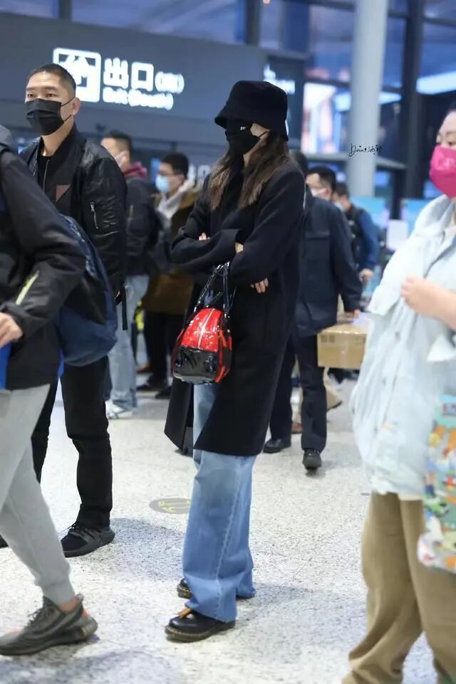 黑色的渔夫帽成熟又时尚,与色彩清新的渔夫帽不同,深色的渔夫帽会给人更神秘的一种搭配魅力,且能随之色彩的愈深,对我们的头部线条以及脸部比例进行更好的修饰,像关晓彤上半身一体黑的搭配给人的感觉就很成熟沉稳,也随之时尚感的呈现,给人一种刻意收敛锋芒感的低调穿搭,包包上搭配的一款黑红色的手提包,Lady的设计风格增强造型的优雅感,也通过鲜红的色彩给予造型小吸睛的一面。