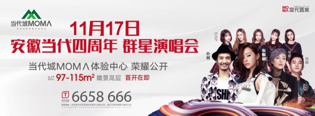 安徽当代,凭借着卓越的品质和优质的服务,4年时间里,得到万家厚爱与支持。此番,恰逢安徽当代四周年到来之际,盛情邀请张靓颖、朴树、毕夏、倪鹏、SISP少女组合,齐聚阜阳体育馆,于11月17日唱响安徽当代对皖省的至善深情。