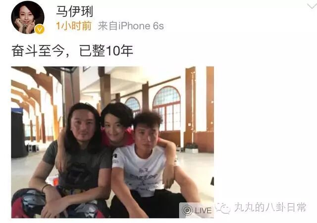 文章出轨门后,马伊琍说出了"恋爱虽易,结婚不易,且行且珍惜"的金句并大度的容纳了选择重新回归家庭的文章。在沉寂多日后,两人在微博上开始出现和解甚至和好如初的趋势,马伊琍也在微博上间接的晒出了一些文章回归家庭后表现的蛛丝马迹,但鲜少晒两人的合照。今天马伊琍更新微博:奋斗至今,已整十年。令粉丝兴奋的除了文章以一头卷发入镜外,眼尖的网友还发现旁边长头发略微发福的人正是曾一起出演<奋斗>的华子。恍然大悟,原来<奋斗>已过去十个年头了,真是白驹过隙!