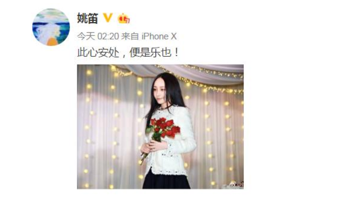 18年3月,姚笛在微博晒出照片,手捧红玫瑰,一脸幸福的表示:“此心安处,便是乐也!”次年就传出了结婚的好消息。