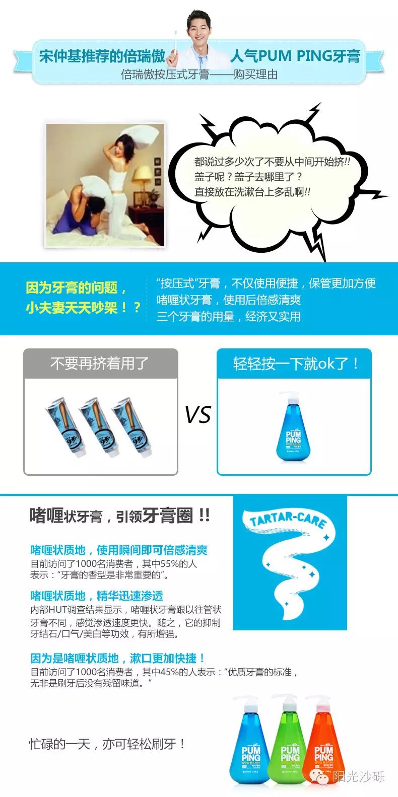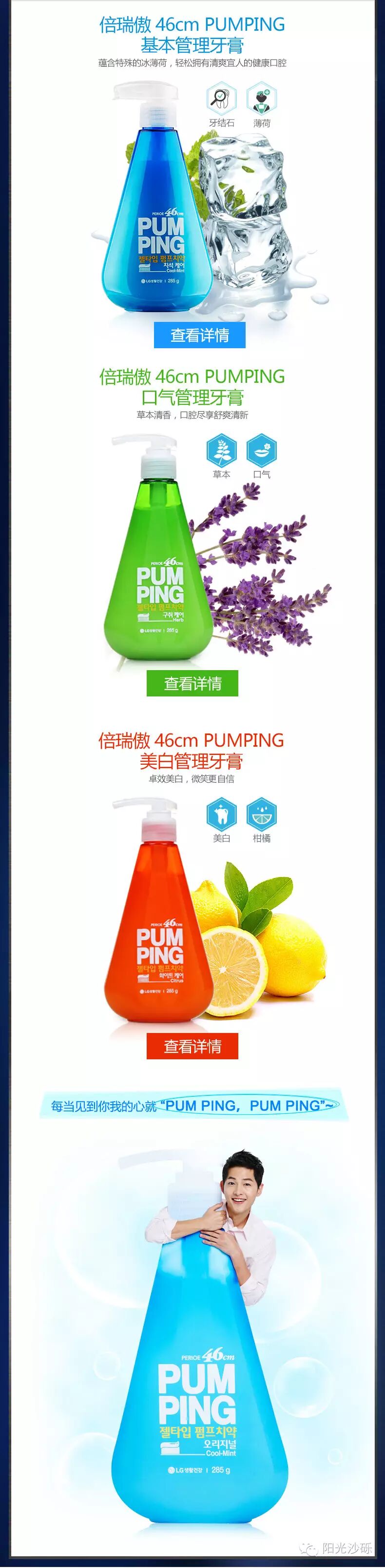 推荐理由 | 你还在用那种挤压的牙膏吗?现在换新概念啦!宋仲基代言的倍瑞奥按压式液体牙膏,创新设计,方便卫生,在韩国已经很火了。除了是仲基欧巴代言必买外!牙膏本身真的很好用,不是花瓶!真的好用!这款新概念牙膏,285G超大容量的,是普通牙膏三倍的量!一瓶能用很久很久。韩国牙膏都稀稀的,挂不住的样子,不像国内那样一挤就一条很粘稠。其实是没有增稠剂的缘故,牙膏膏体挤出来后有种晶莹剔透的感觉,细看的话还蛮漂亮的~用完后很口内很清新,并且很清爽,一点也不刺激,不像一般牙膏那么辣,而且刷出来的泡泡也不像一般牙膏那么多,牙膏泡沫很细腻,感觉能刷到牙龈每个位置。目前到货有两款,蓝色包装是清凉薄荷(去牙结石),橙色是香橙薄荷(美白)。话说!采购刚进货回来,办公室女同志就人手一瓶预定了(冲着仲基欧巴去的),男同志竟然也人手一瓶(感觉情敌又增加了),但无意间听到男同志们的谈话“这么大瓶,放到卫生间既可以做牙膏,也可以当洁面,还能做沐浴露?”只想说,直男的思想我不懂,我只想安安静静的买个牙膏,做仲基欧巴的老婆而已!以后再也不用到处找牙膏盖,也不用费劲的挤牙膏了。自用超值推荐! |