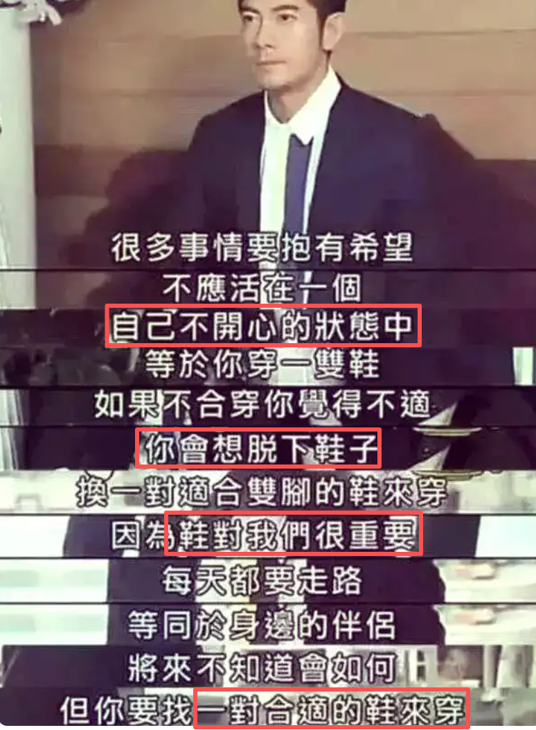 可13年分手时,郭富城一句“鞋子不合适就换,不然会磨出血”的言论。