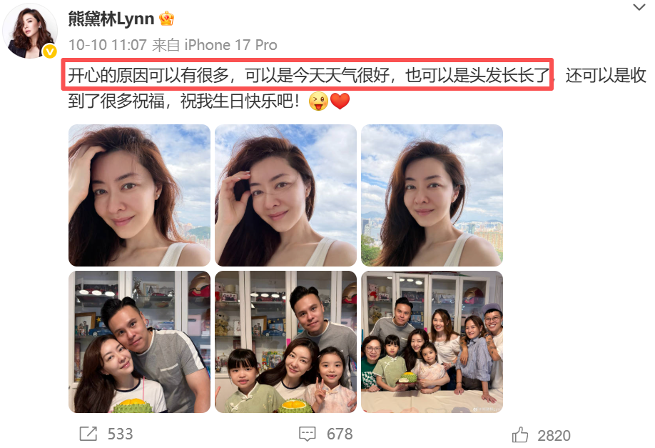熊黛林曾说过:“幸福才是一个人最好的保养品。”