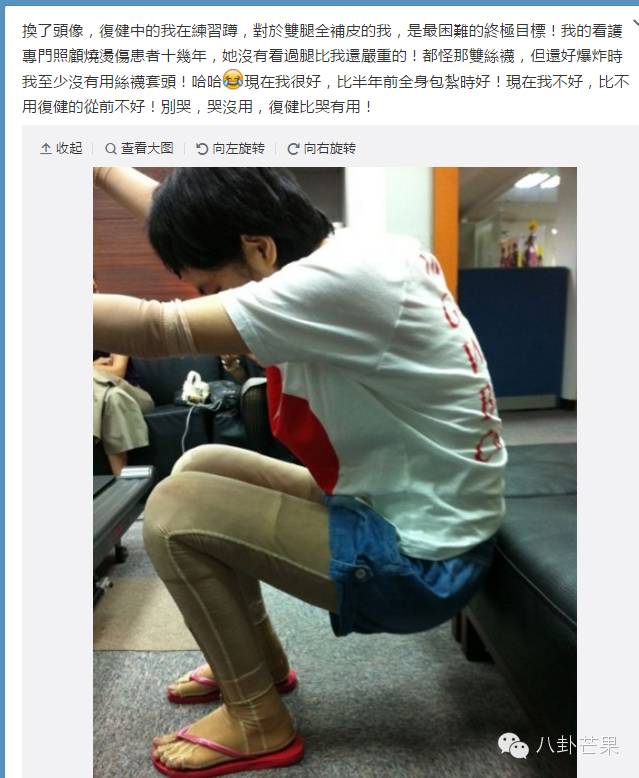 然后Selina开始了常人无法想象的痛苦的植皮手术和复健生活。