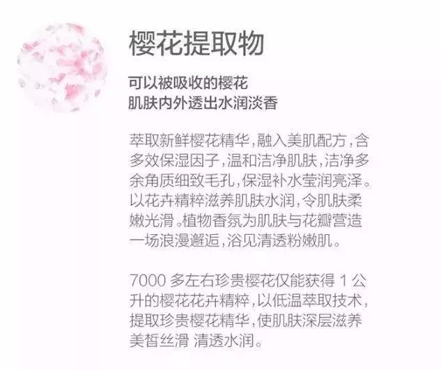 提取樱花精粹,融入具有深层滋养效果的小分子胶原蛋白精华中,焕发生机,留住肌肤年轻态。