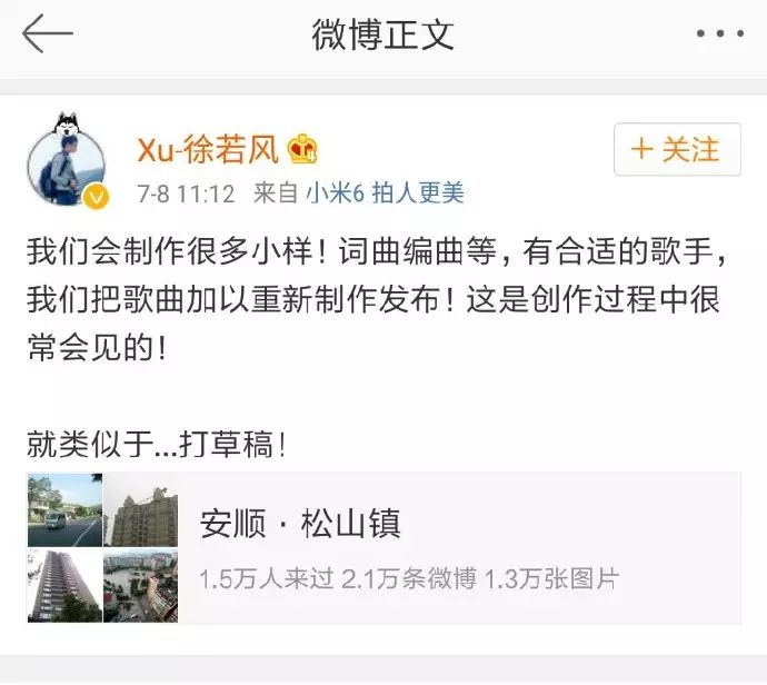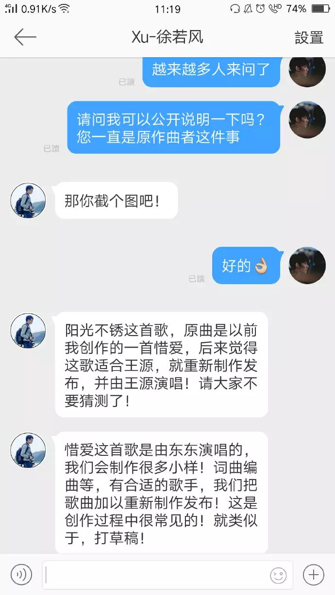 所以呢,那些想给小源泼脏水的人可以停止了,正如徐若风所说“我是歌曲所有人,我都没说话!”对啊,原作曲者都没说什么,那些局外人又有什么资格呢?