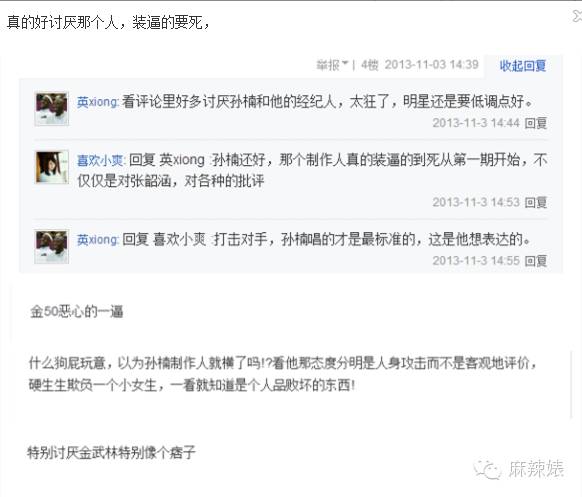 早在《我是歌手》之前,孙楠就参加过音乐类综艺比赛《全能星战》。当时,孙楠被黑就是因为他和他的音乐制作人金武林态度不好,尤其金武林在《全能星战》中狂拽酷炫屌炸天,甚至嚣张暗示大众评委给分,更骂哭张韶涵!