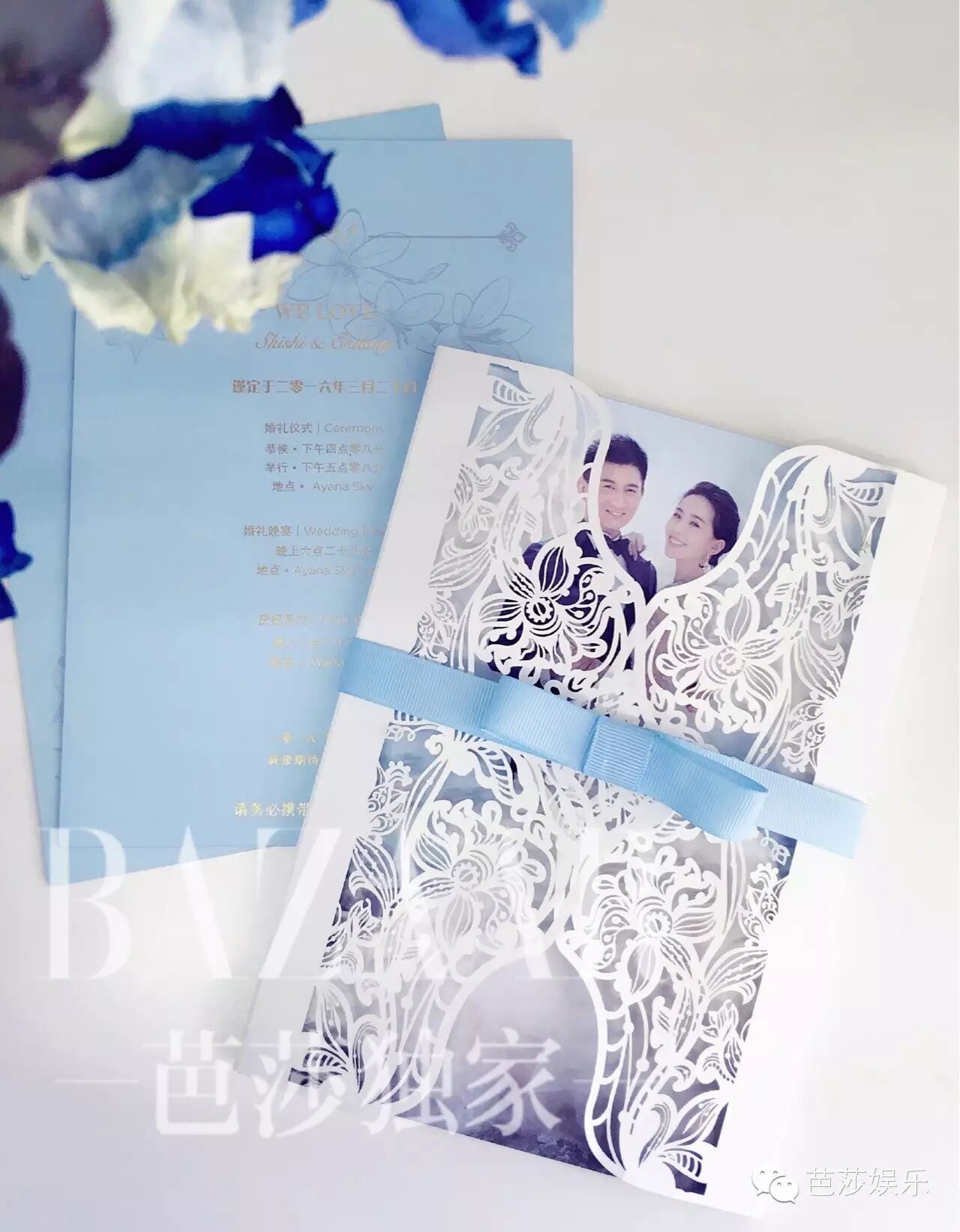 而让芭姐最感动的还是婚礼请柬的设计,封面图案是木兰花,灵感来自两人在《步步惊心》中的定情信物木兰玉簪
