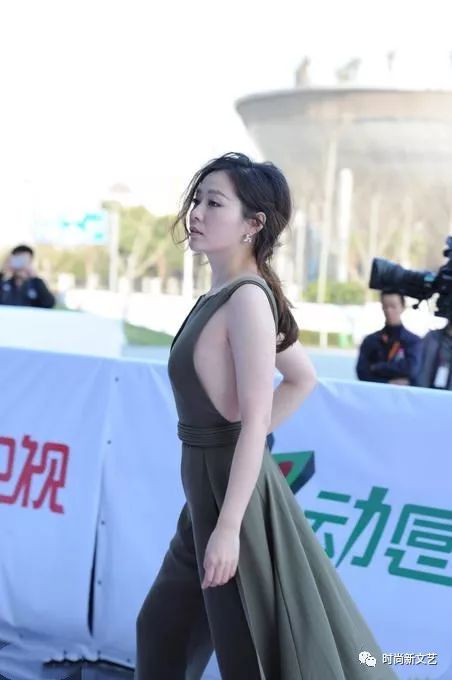 不仅是侧面设计大胆,整个后背都是全部露出来的。不过从这张图看,这件礼服的尺度也太大了,连乳贴都走光了。